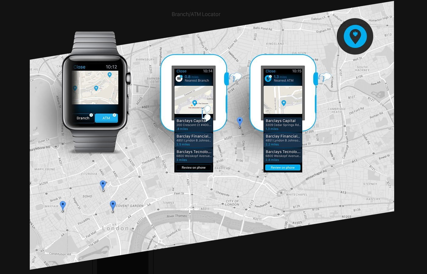 Empowered users to effortlessly locate nearby Barclays branches and