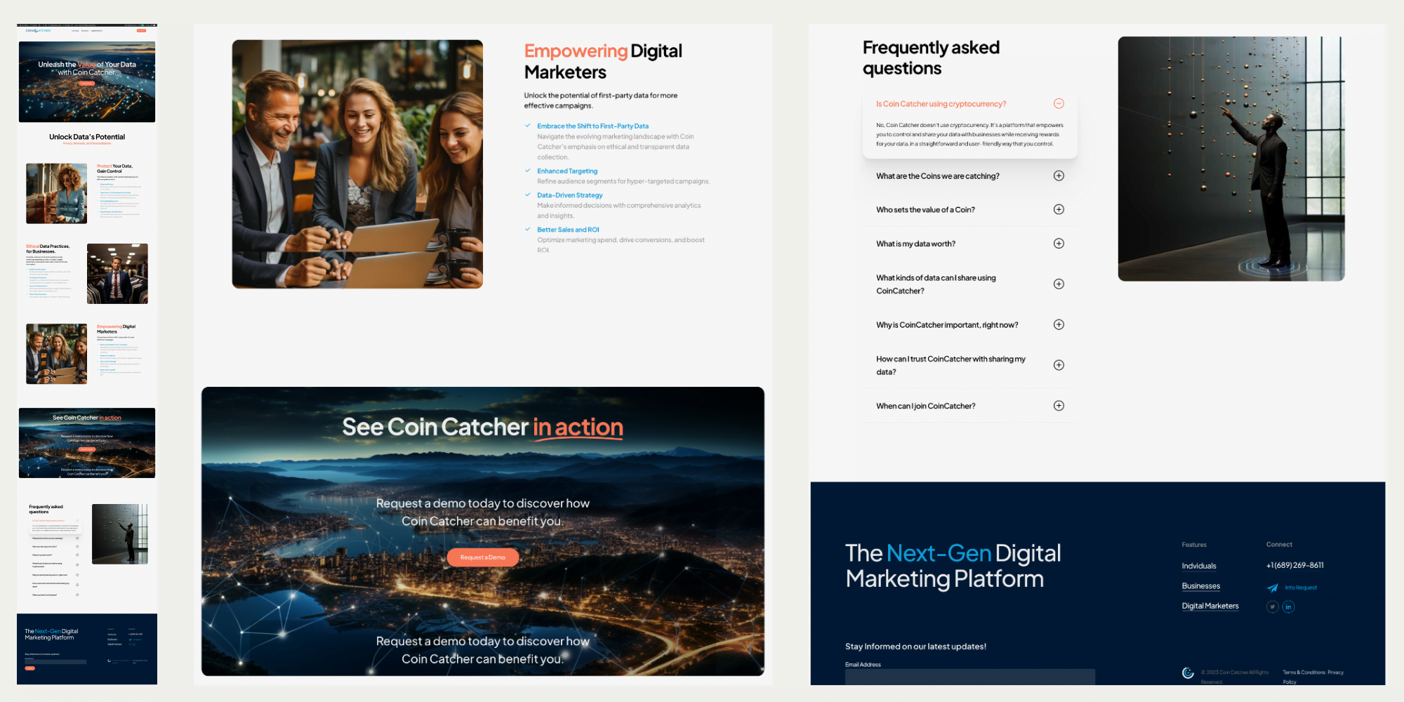 The Coin Catcher project has achieved remarkable success, making a profound impact across the digital landscape. By meticulously breaking down UX research plans with strategic approaches, we have not only crafted a compelling brand identity but also fine-tuned a digital marketing platform seamlessly woven into users’ lives. The refined visual language, intuitive interfaces, AI integrations, and strategic user journeys have positioned Coin Catcher as a trailblazer in the future of digital marketing.