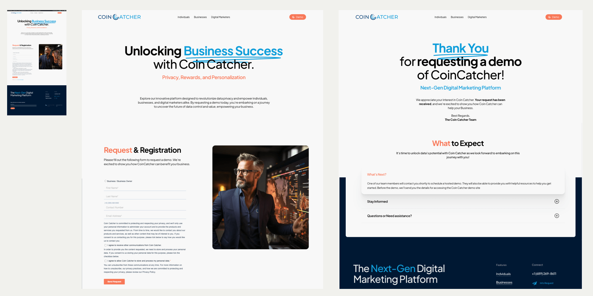 At Coin Catcher, we are driven by our mission to revolutionize the data privacy and digital marketing landscape. Our goal is to empower consumers by giving them control over their personal data, while also providing businesses with valuable first-party data. Through our innovative platform, users can manage, share, and even monetize their data. We prioritize privacy, security, and ethical practices, and strive to foster trust and loyalty between businesses and customers.