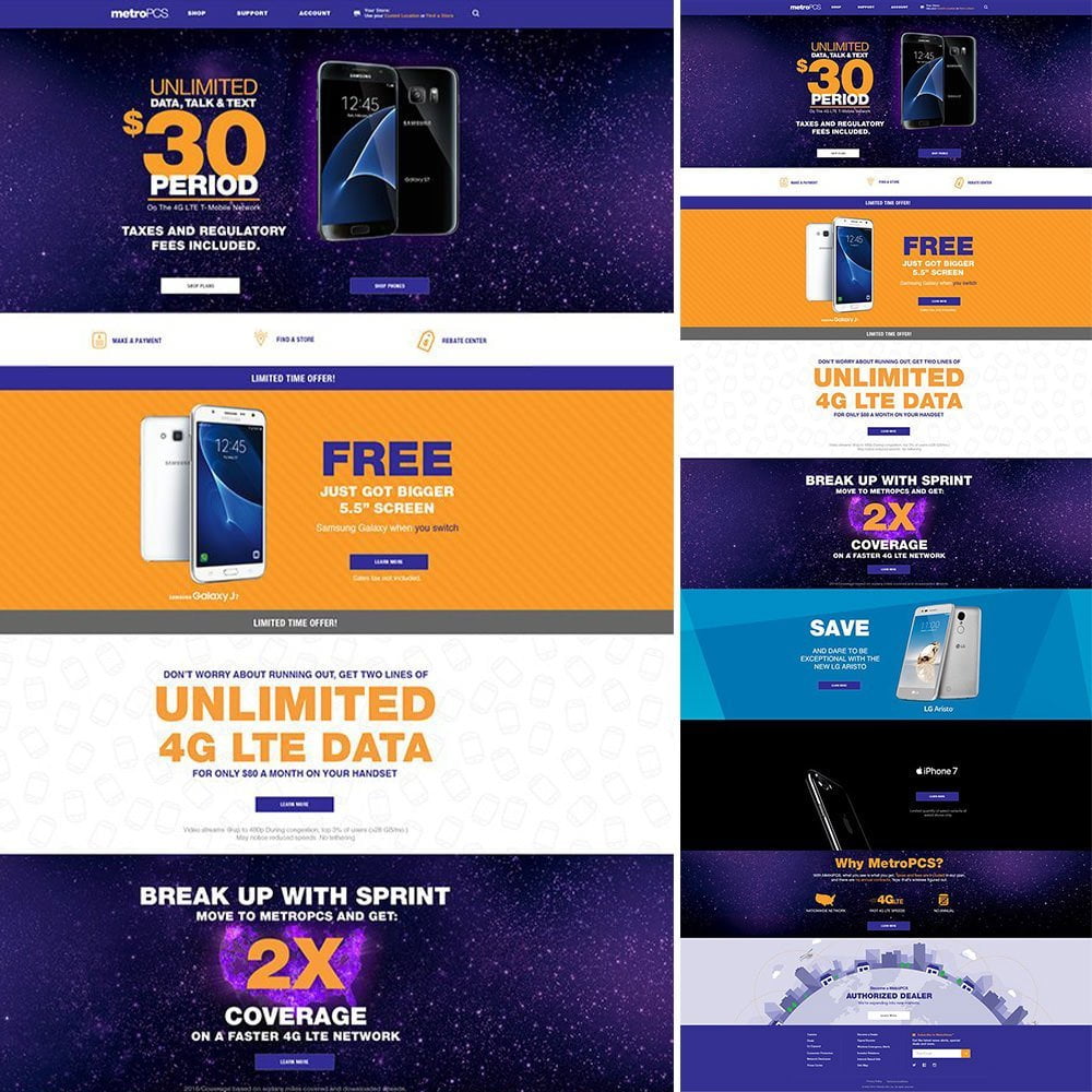 The collaborative efforts of the team resulted in vibrant, creative designs that brought MetroPCS.com