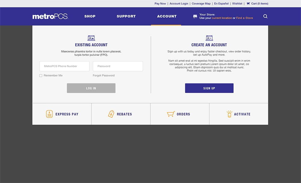 Metro PCS Website