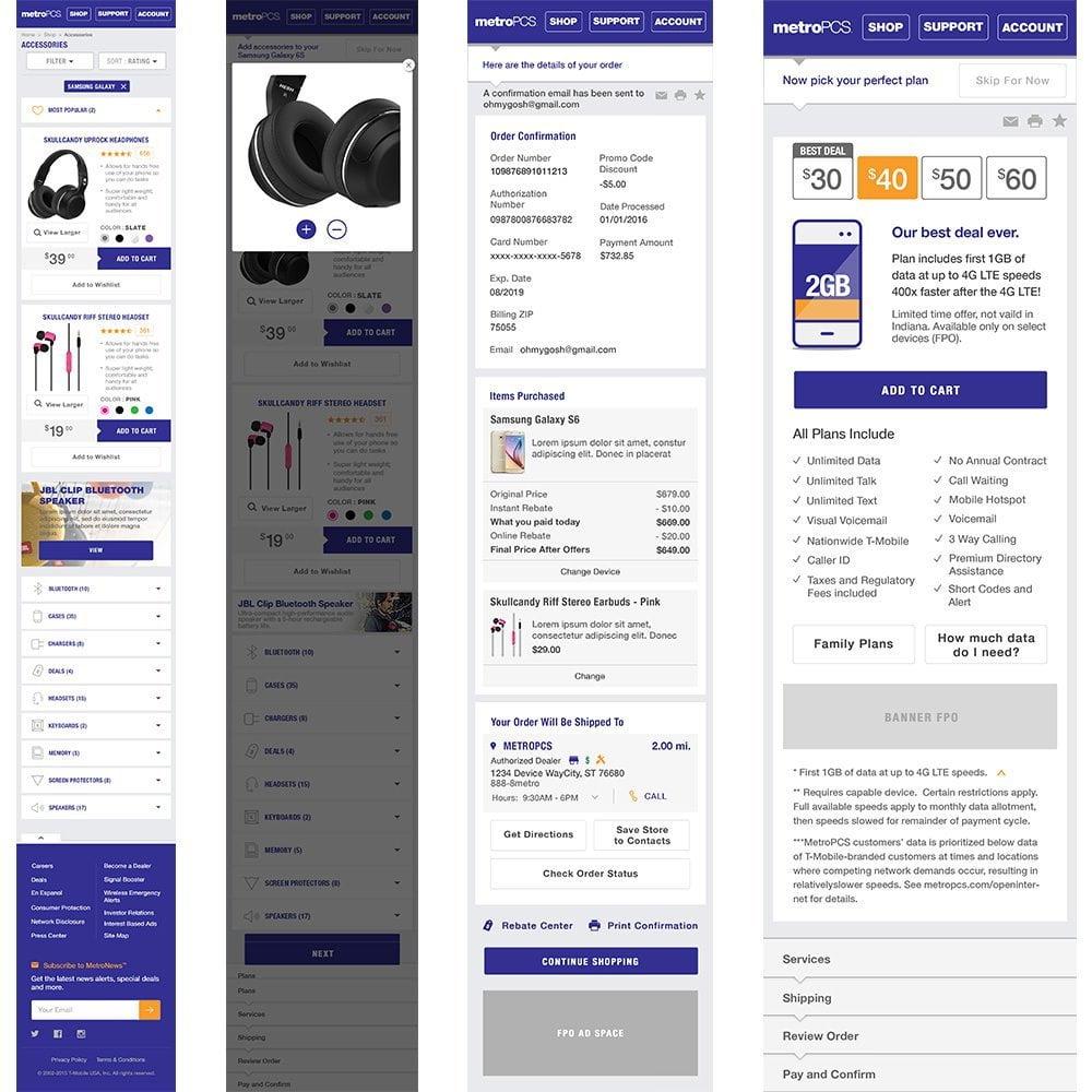 Kyle Vena embraced the Metro PCS project, aiming to revolutionize the customer shopping journey on MetroPCS.com. The mission was to facilitate effortless checkouts for phones, accessories, plans, and add-on services. Simultaneously, a revamp of the live website was initiated to seamlessly integrate quarterly marketing campaigns, all while overhauling the platform to support e-commerce for ordering phones and accessories.