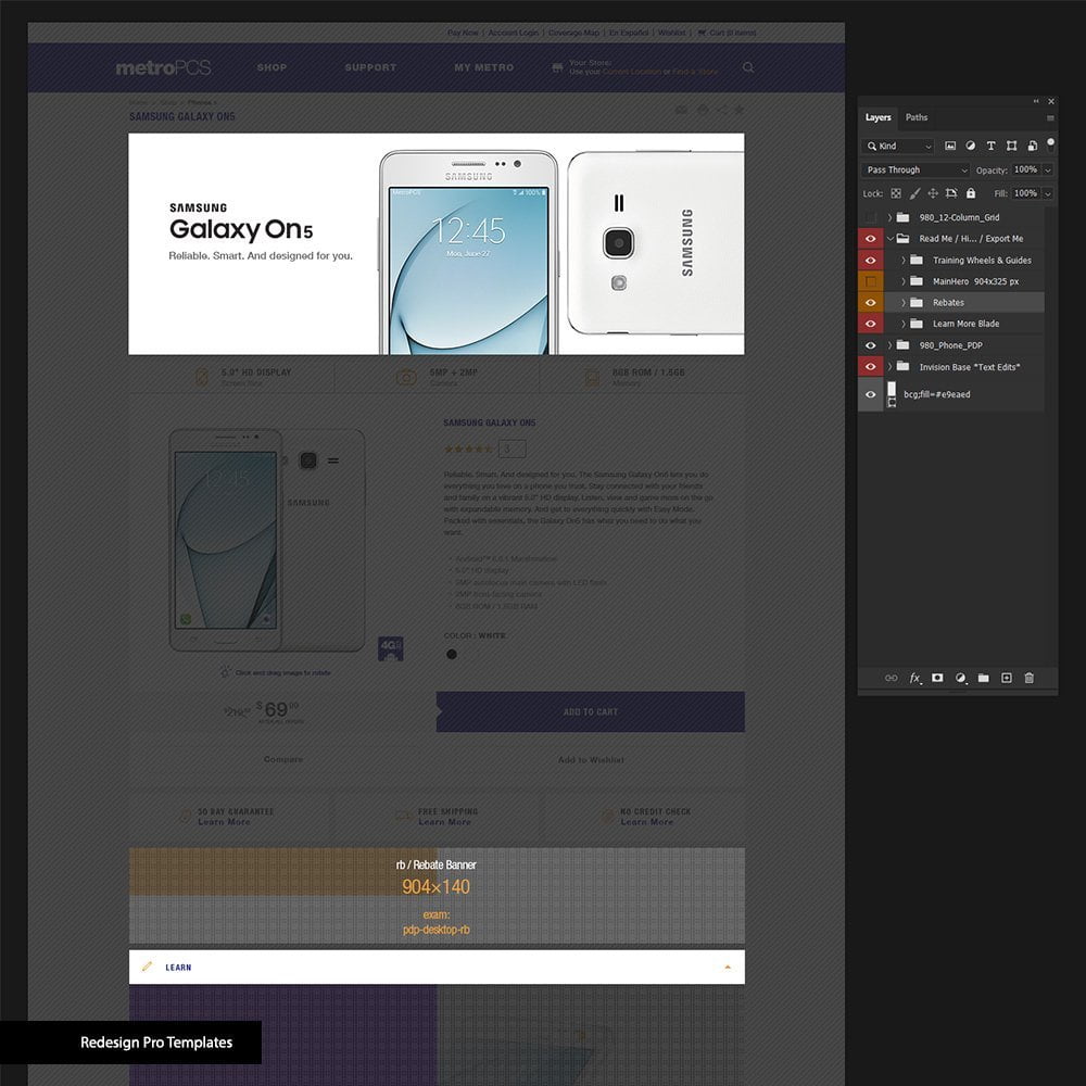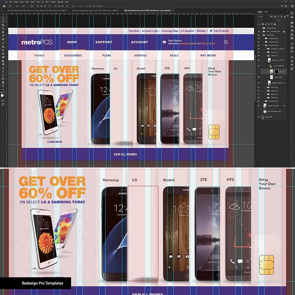 - Marketing Templates (MKT):Facilitating efficient production, Kyle strategically organized design components, distinguishing between the original live site and redesigned marketing areas for MetroPCS products.
