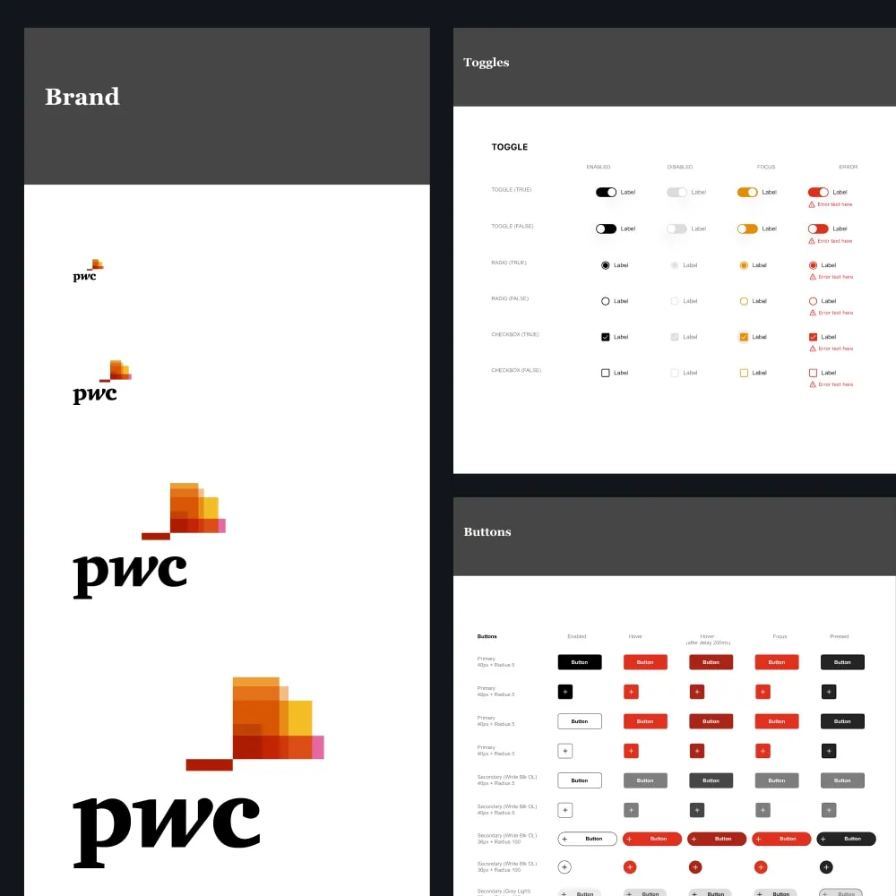 - PwC Style Guides & Components: Establishing a foundation for cohesive and modern aesthetics.